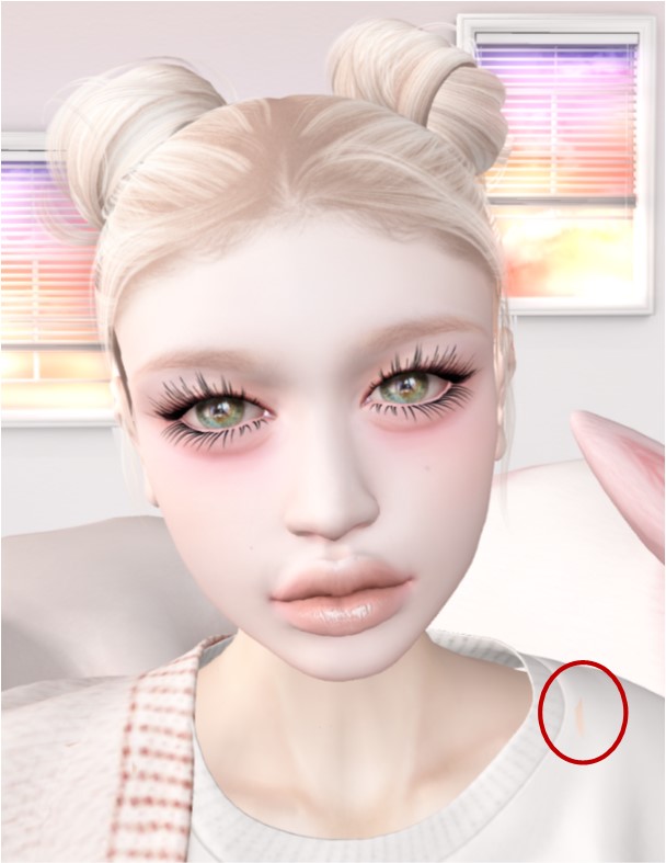- I see a peek-a-boo flaw (clipping) near the neck. I'm wearing Maitreya and no, I didn't try on the demo. I'm lazy. I have oodles of stuff from Zenith and hoped for the best. I'll still wear and blog the outfit because I like it!